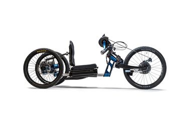 The Bowhead Rogue™ FS/E, an entry level off-road "delta" design hand cycle, with one wheel in front, two in back, that features full suspension and also sports the Bosch CX motor.